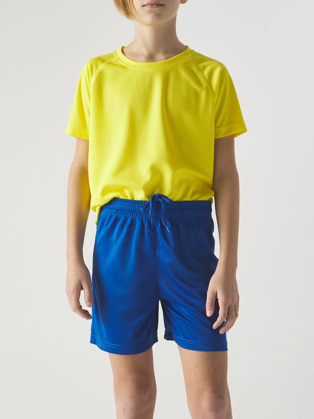 100% poliestere. Pantaloncino bambino con elastico in vita con cordoncino in tinta, senza slip, rifiniture rinforzate. Etichetta removibile.