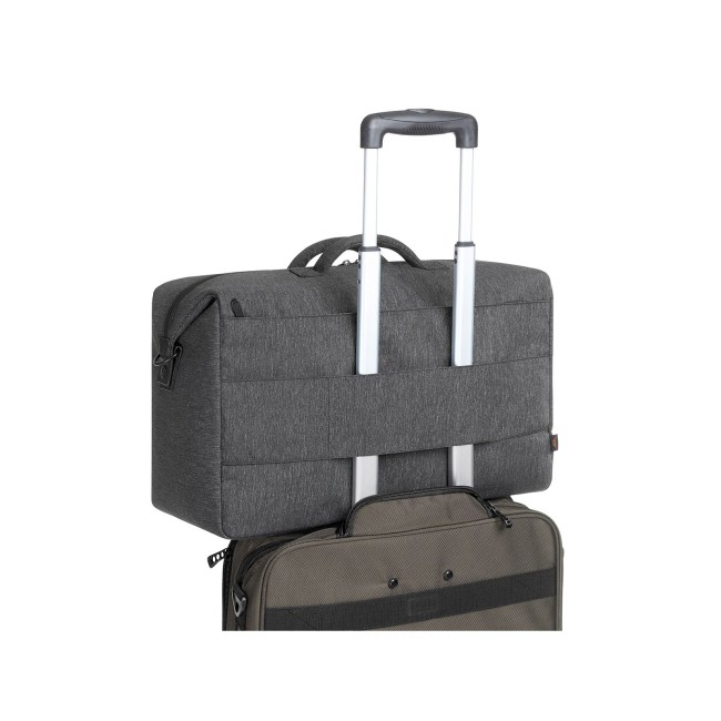100% poliestere. Borsa con ampio scomparto principale imbottito e trapuntato con zip, con fissaggio a pulsante laterale, scomparto a rete con zip sul retro, supporto del trolley, fondo imbottito, tracolla rimovibile e regolabile, spallaccio imbottito, due manici imbottiti. Dimensioni: 51x30x23 cm. Area personalizzabile: su supporto HFL 5,7 x 2,3 cm.