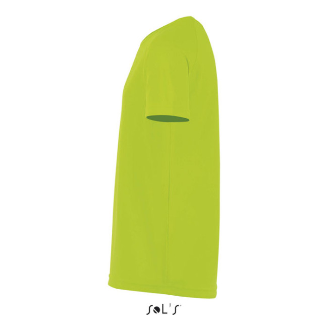 SOL'S SPORTY Kids, Tshirt 140g/m², Il materiale traspirante, il taglio con maniche raglan e le cuciture piatte rendono quest'articolo ideale per tutte le vostre operazioni sportive. Disponibile in un'ampia gamma di taglie e colori, tra cui delle tonalità fluo. 100% poliestere effetto traspirante, girocollo ribassato, maniche a taglio raglan, retro del capo più lungo e arrotondato. Taglie - 6 anni: 106-116cm (XL), 8 anni: 118-128cm (XXL), 10 anni: 130-140cm (3XL), 12 anni: 142-152cm (4XL). Stampa in sublimazione disponibile sono sull’articolo di colore bianco.