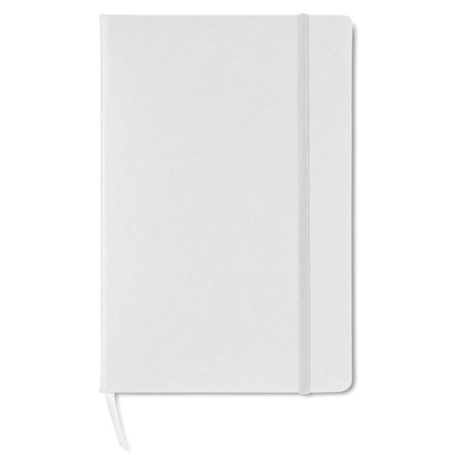 Notebook A5 con copertina rigida in PVC. Rilegato. 192 pagine a quadretti in carta riciclata (96 fogli). Elastico di chiusura abbinato e segnalibro a nastro.