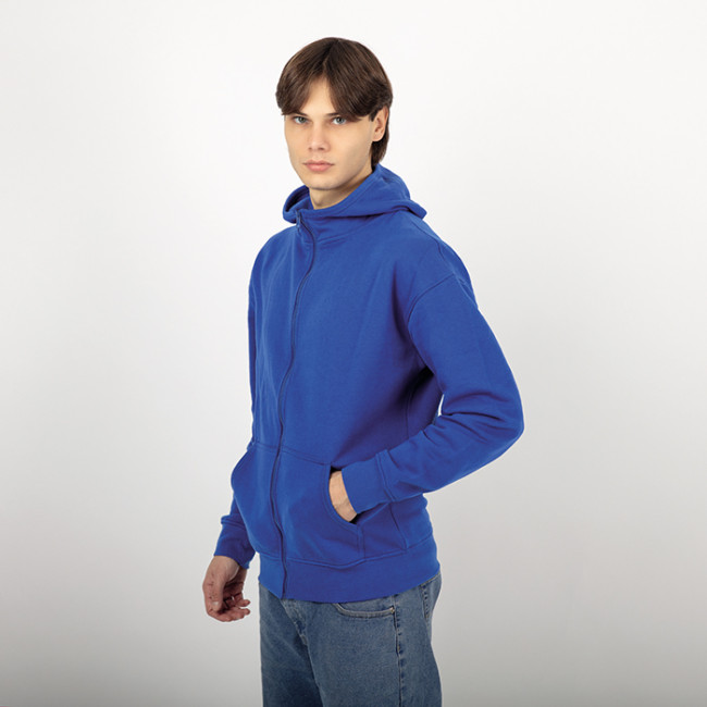 felpa con cappuccio zip lunga polsini e girovita elasticizzati due tasche a marsupio ribattitura doppio ago su collo, maniche e orlo nastro di rinforzo interno da spalla a spalla colori reattivi colletto antivento 280 g/m2