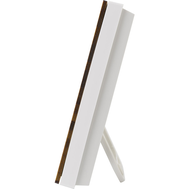 Stazione meteorologica in bamboo, ABS e vetro con supporto pieghevole che si blocca in varie posizioni, diverse funzioni come l'ora, calendario, panoramica della settimana, sveglia, temperatura, umidità ed informazioni meteo, batterie incluse