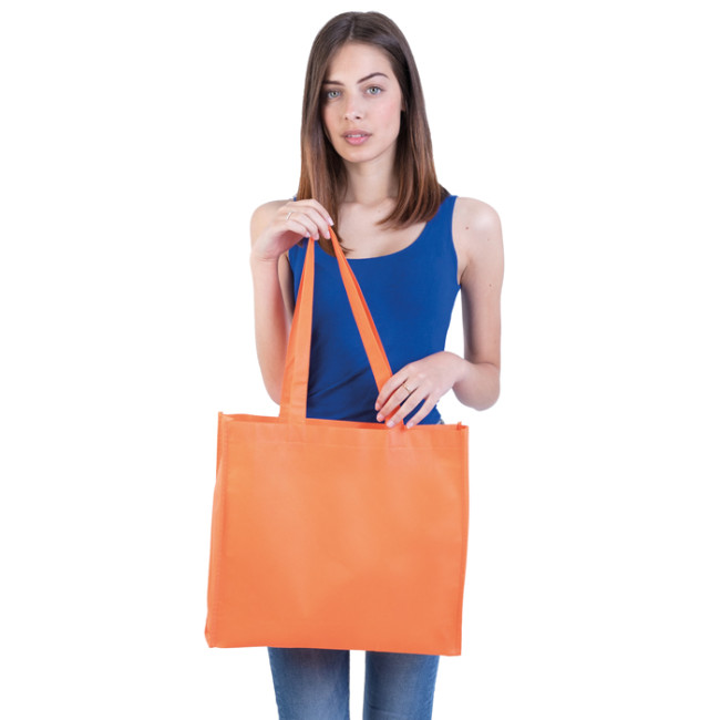 borsa shopping con soffietto manici lunghi rifiniture cucite tecnica di stampa consigliata: serigrafica