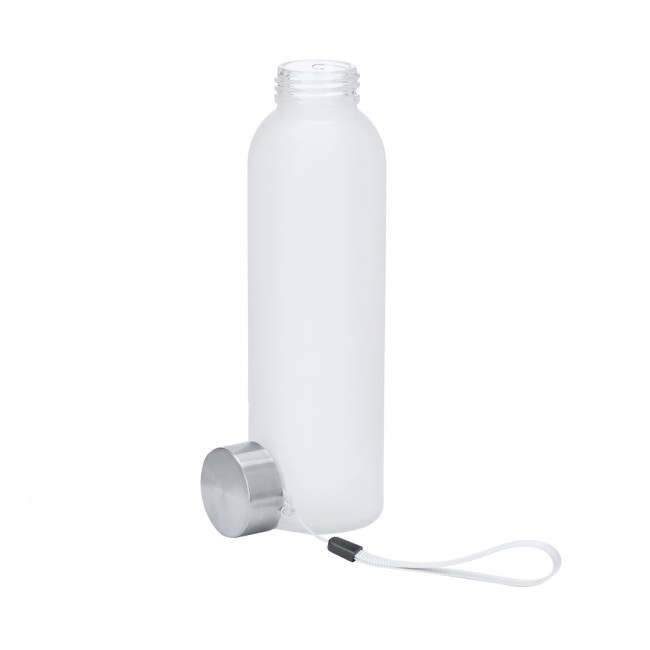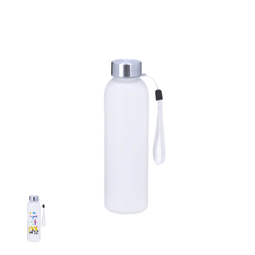 Bottiglia da 500 ml di capacità, ideale per marcatura in sublimazione. Corpo realizzato in vetro satinato e tappo in acciaio inox privo di BPA. Include pratico cordino per il trasporto.
