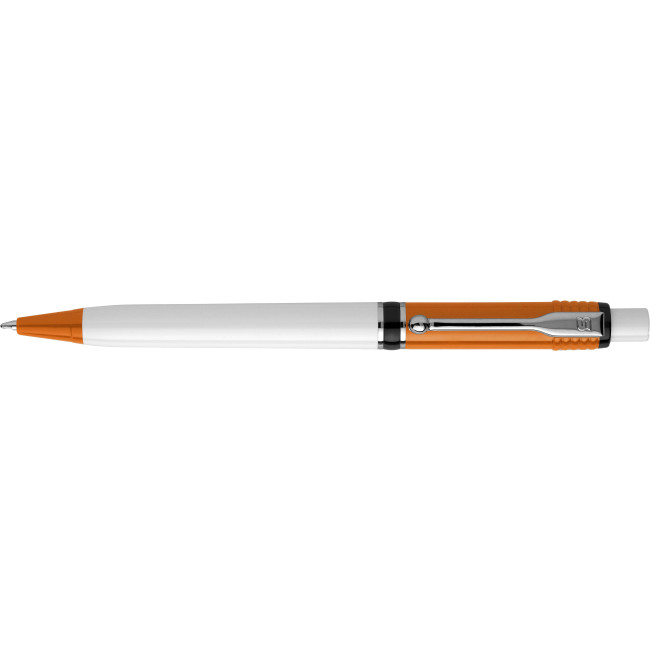 Stilolinea, penna a sfera in plastica, fusto bianco, componenti colorati, clip in metallo, refill blu jumbo. Ordinabile per 1.000 pezzi.