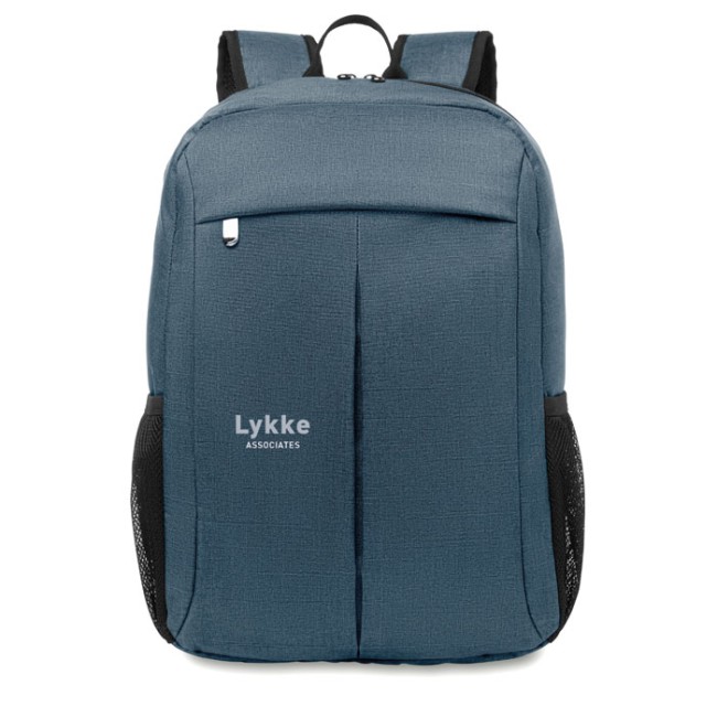 Zaino porta pc da 15 inch in poliestere 360D. Comparto interno per laptop e tasca frontale con zip. Schienale imbottito, tasche a rete laterali. Strap per trolley sul retro.