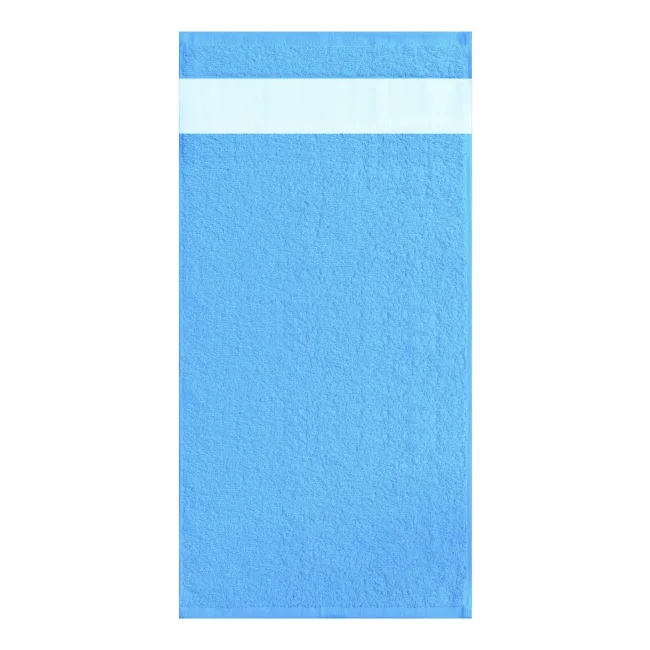 100% cotone. Telo con bordo in poliestere, ideale per la stampa. Adatto per piccole e medie produzioni. Tipi di personalizzazione: stampa a sublimazione. 3 dimensioni: 30x50cm bordo 7cm - 50x100cm bordo 8cm - 70x140cm bordo 9cm.
