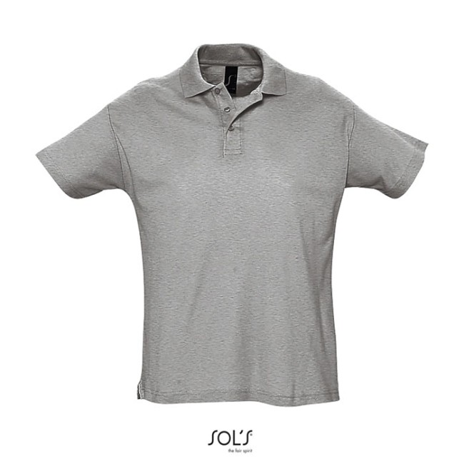 SOL'S SUMMER II, Polo da uomo, 100% cotone pettinato ringspun piqué 170, colletto a costine, nastro di rinforzo sul collo, abbottonatura rinforzata, maniche corte, abbottonatura a tre bottoni tono su tono, orlo dritto con spacchi laterali, tagliato e cucito, bottone di ricambio sulla cucitura interna, (1) Ash: 98% cotone / 2% viscosa, (2) Grey Melange: 85% cotone / 15% viscosa. Per la corrispondenza delle taglie, consultare la tabella delle taglie nella sezione della documentazione del prodotto.