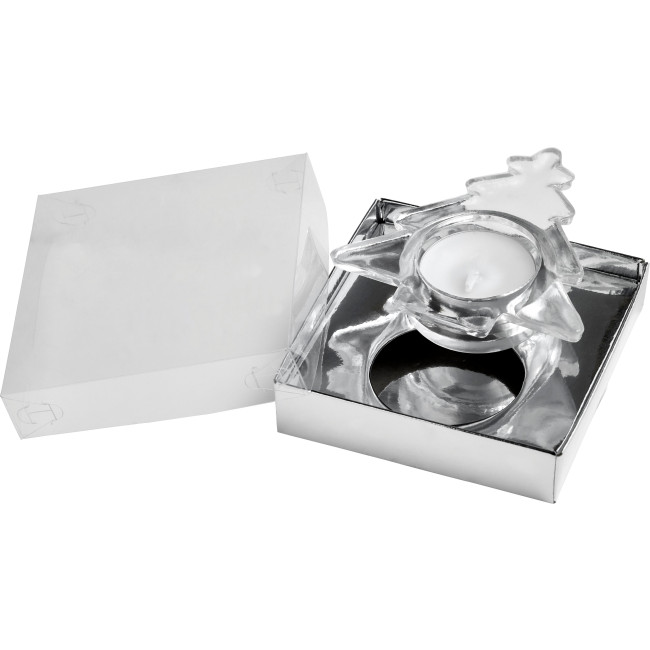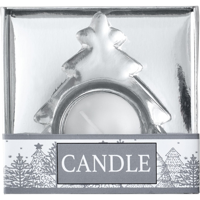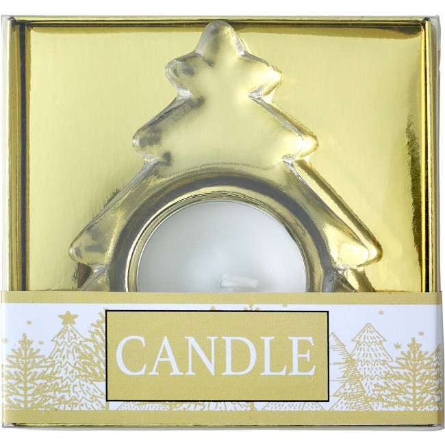 Supporto candela a forma di albero di Natale, con piccola candela bianca, si presenta in confezione regalo lucida, coperchio trasparente