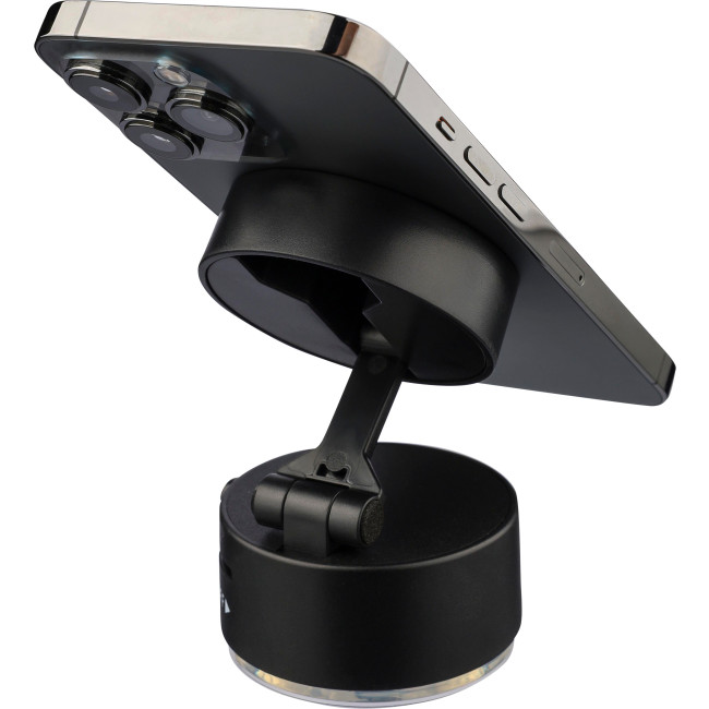 Supporto magnetico per smartphone MagSafe in ABS riciclato con base a ventosa e funzione di blocco per un fissaggio sicuro. Si può piegare in dimensioni compatte, include anello in metallo per garantire la compatibilità con tutti i tipi di telefono, logo “recycled” posizionato tra le modalità on e off. Ideale per l’uso su superfici lisce, come in auto, confezionata singolarmente in una scatola in cartone avana.