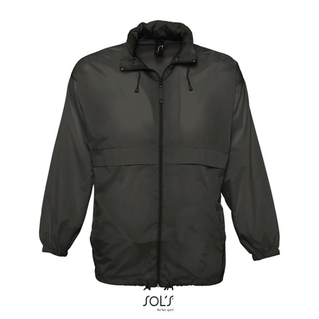 SOL'S SURF, Giacca a vento unisex idrorepellente, 100% poliammide 210T, apertura con cerniera, cappuccio con coulisse ripiegato nel colletto, 2 tasche esterne con cerniera, sistema di ripiegamento ''in bag'' con lacci elasticizzati in vita, polsini elasticizzati, occhielli di ventilazione. Per la corrispondenza delle taglie, consultare la tabella delle taglie nella sezione della documentazione del prodotto.