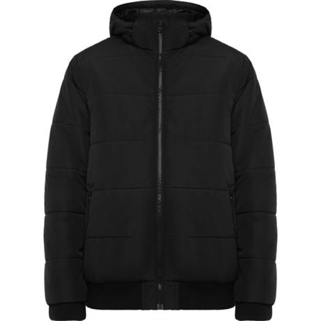 Giubbotto imbottito idrorepellente.Collo alto.Cappuccio rimovibile con regolatori.Zip centrale in tono con tiretto e mentoniera.Due tasche laterali con cerniera.Cosine 2x1 nei polsini e vita.Accesso per la personalizzazione sul lato sinistro e sulla schiena.
