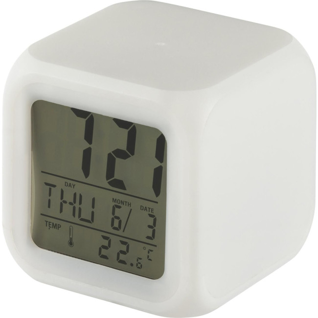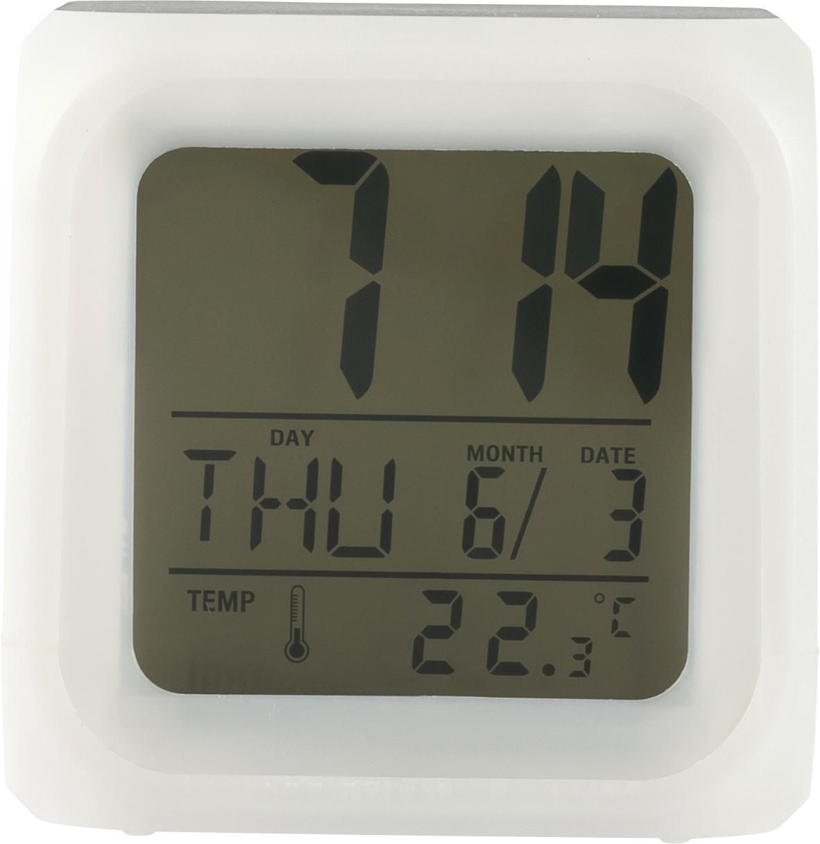 Sveglia a forma di cubo HIPS che cambia colore, indica ora, giorno della settimana, data e temperatura, batterie incluse