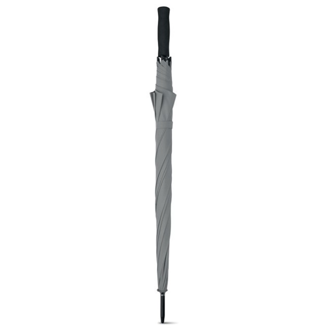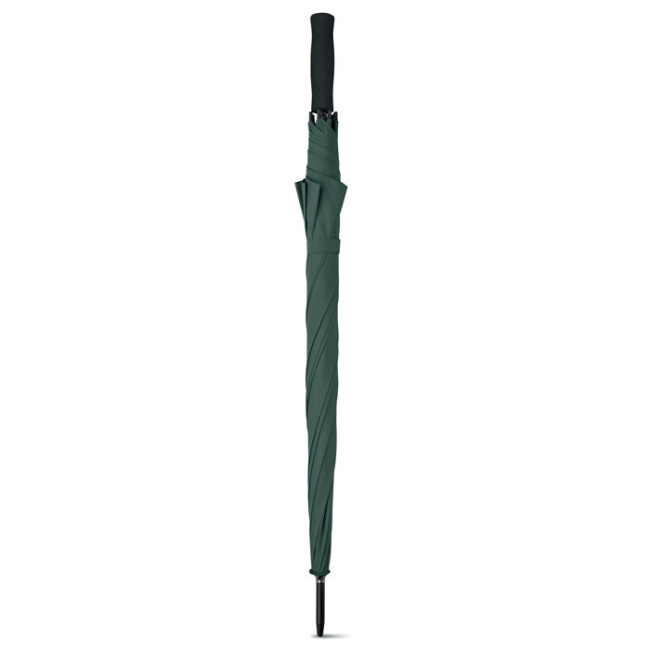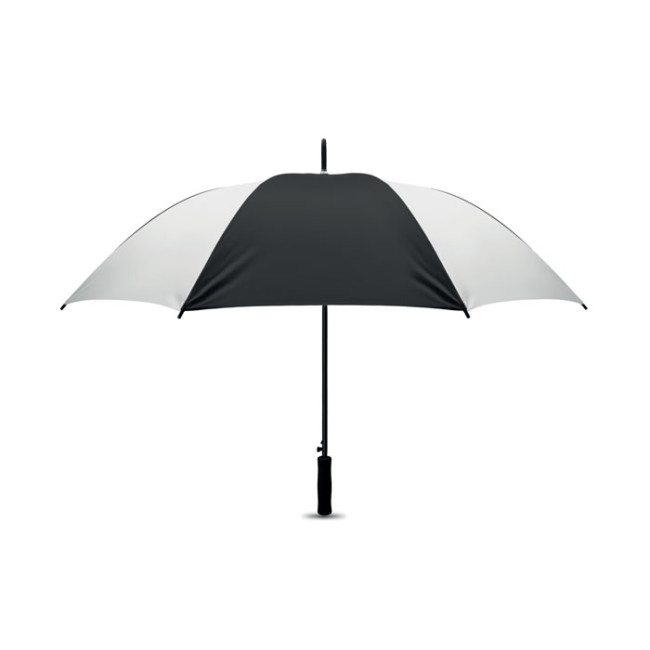 Ombrello 27'' in pongee 190T con manico in EVA. Struttura placcata in nero e punte in plastica nera. Apertura automatica.