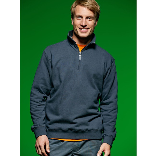 100% cotone. Felpa con colletto alla coreana e cerniera corta French-terry di alta qualità, sgarzata, Bordi elastici sul girocollo, sui polsini e sulla girovita, Cuciture flatlock, necktape, Tessuto esterno (300 g/m²). Manica lunga.