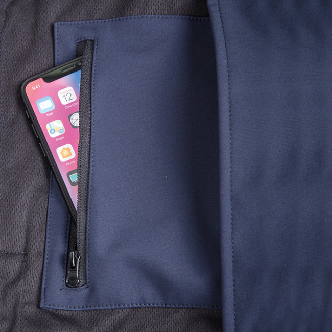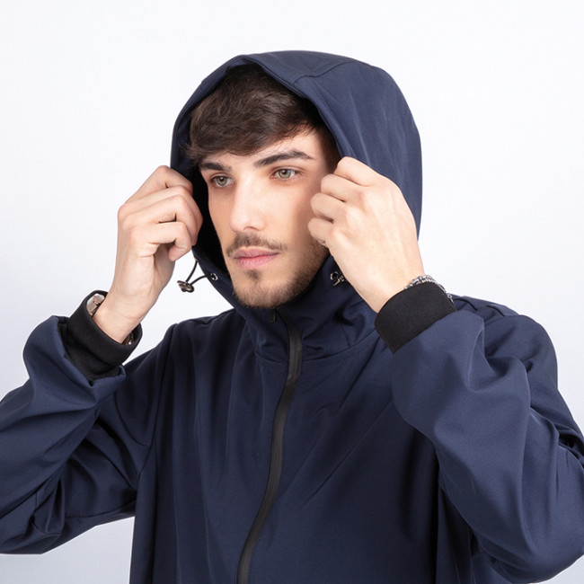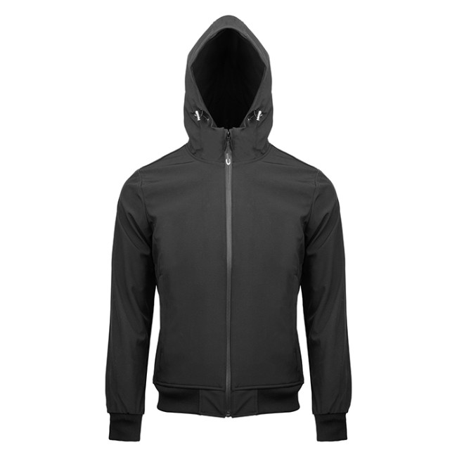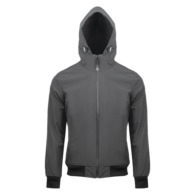 Giubbotto in tessuto impermeabile doppio strato soft shell cerniera centrale antiacqua taglio laser cappuccio regolabile tasche con zip coperte tasca interna con zip