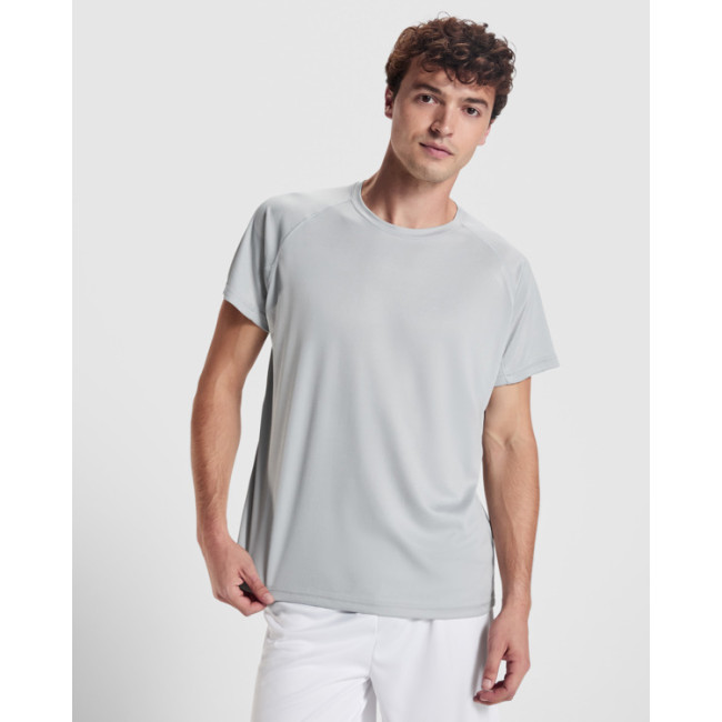 T-shirt tecnica Bahrain a manica corta, realizzata con collo rotondo e copri cuciture in tinta. Presenta pannelli inferiori delle maniche e profili tono su tono sul giromanica. Realizzata in tessuto CONTROL DRY, è leggera e traspirante, ed è personalizzabile con logo per eventi sportivi.