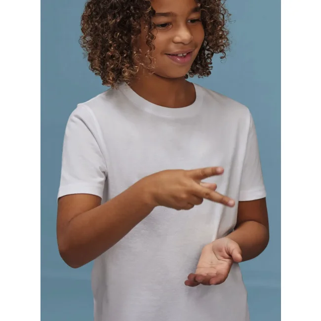 T-shirt girocollo tubolare da bambino in cotone pre-ristretto e pettinato