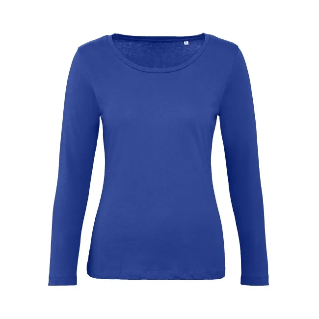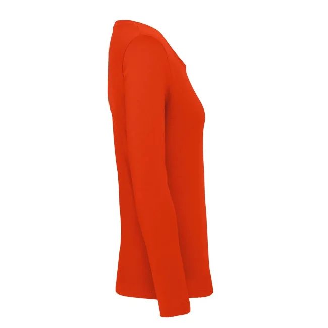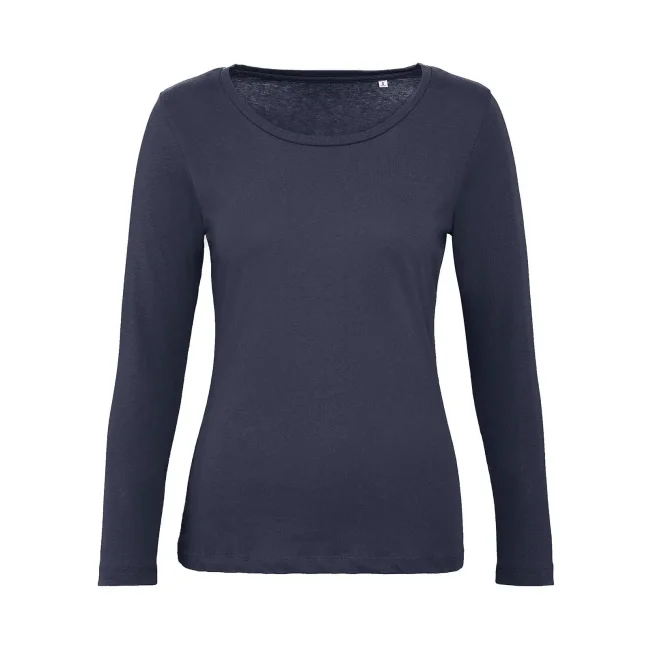 T-shirt Inspire LSL da donna realizzata in cotone organico o organico in-conversion ring-spun. Presenta maniche lunghe set-in e un girocollo con costine, risultando morbida al tatto. La struttura con cuciture laterali e il nastro di rinforzo alle spalle garantiscono comfort e resistenza, mentre l'assenza di etichetta la rende ideale per la personalizzazione con logo.
