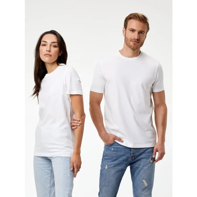 100% cotone. Girocollo basso con para sudore, manica corta, fit moderno, struttura con cuciture laterali, senza etichetta, solo una piccola etichetta taglia, etichetta composizione e made in Italy sul fianco.