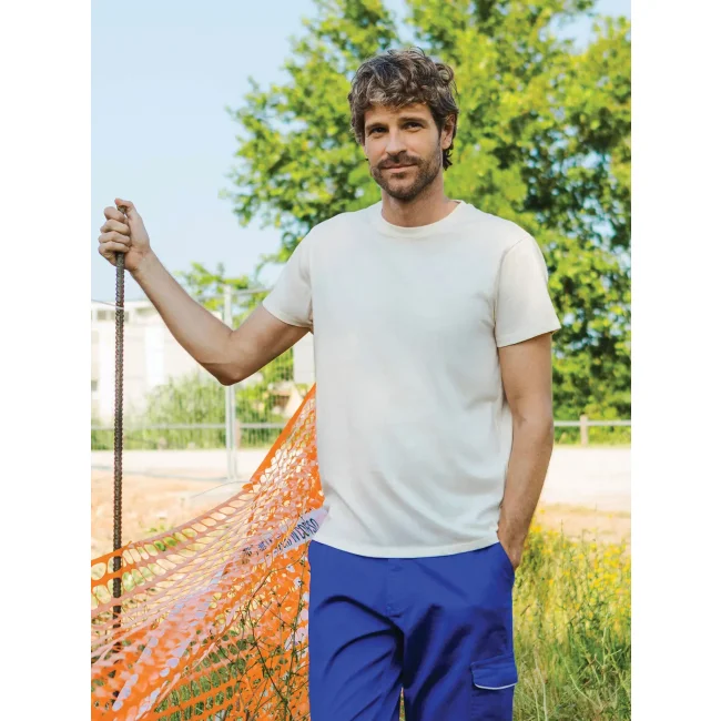 T-shirt unisex manica corta realizzata in cotone ring-spun single jersey. Presenta collo in costina con cucitura a doppio ago e parasudore a contrasto. Morbido tessuto trattato ad enzimi con struttura a cuciture laterali.