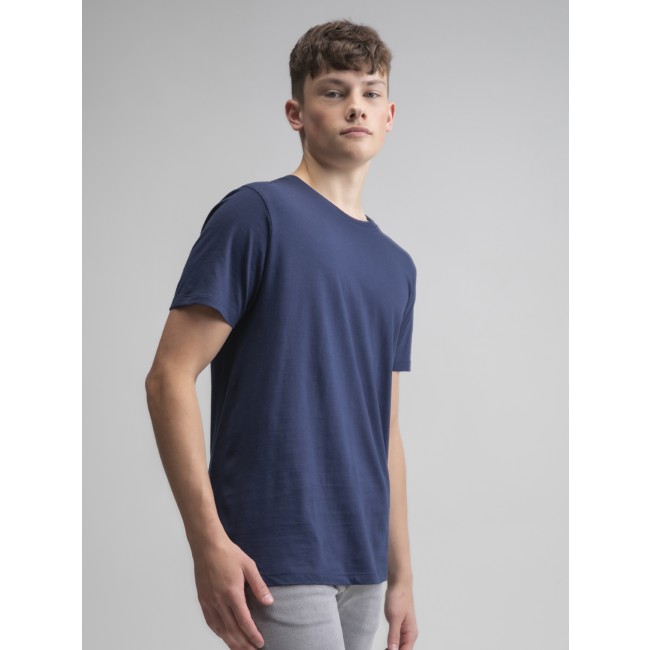 100% cotone organico ring-spun. Single jersey. T-shirt manica corta in cotone leggero, struttura con cuciture laterali. Al collo, solo etichetta taglia. Cotone certificato GOTS.