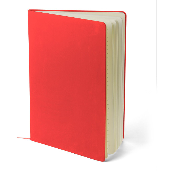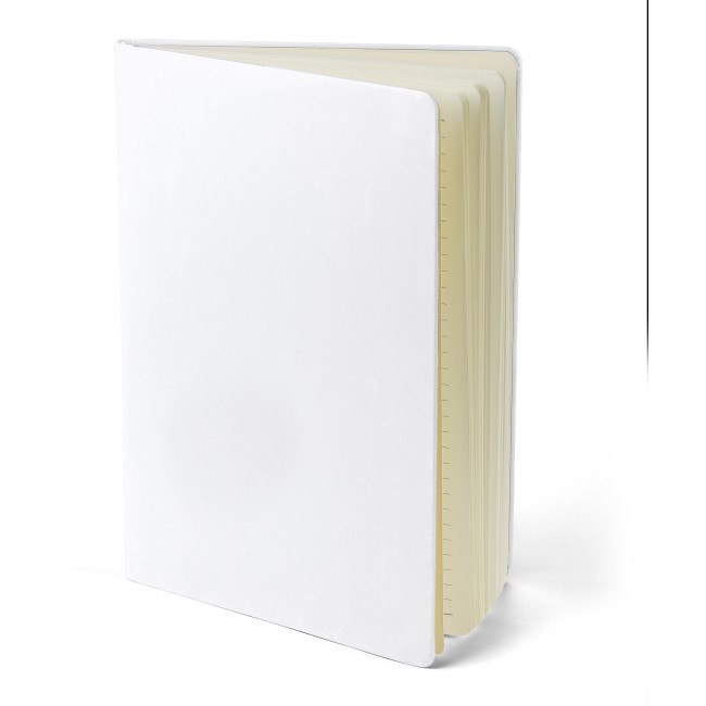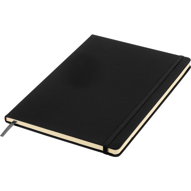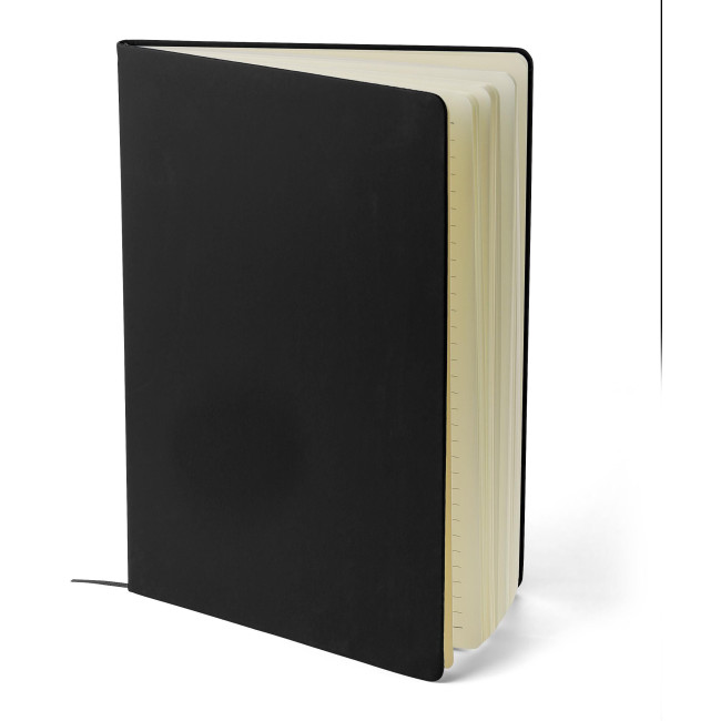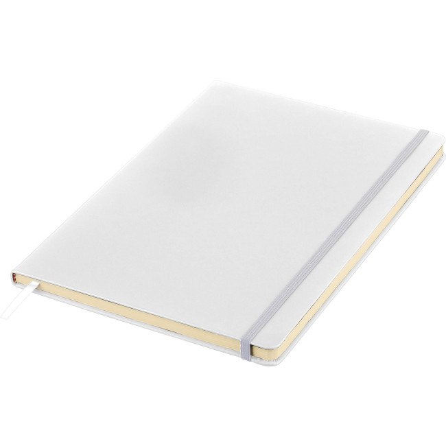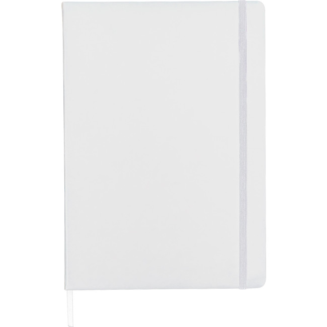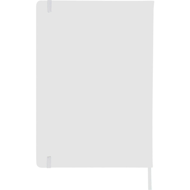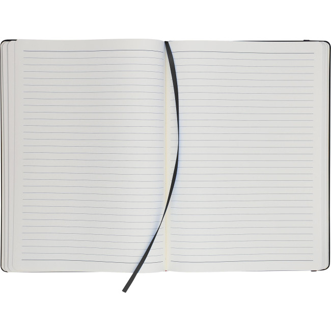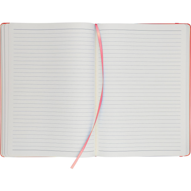 Taccuino formato +/- A4 con copertina rigida in PU riciclato dai colori vivaci. Include 96 pagine a righe fronte-retro con spaziatura di 0,7 cm, più due pagine bianche all’inizio e alla fine. La carta di questo taccuino è certificata FSC® Mix. Presenta un elastico abbinato, un segnalibro a nastro e un logo riciclato in rilievo sul retro.
