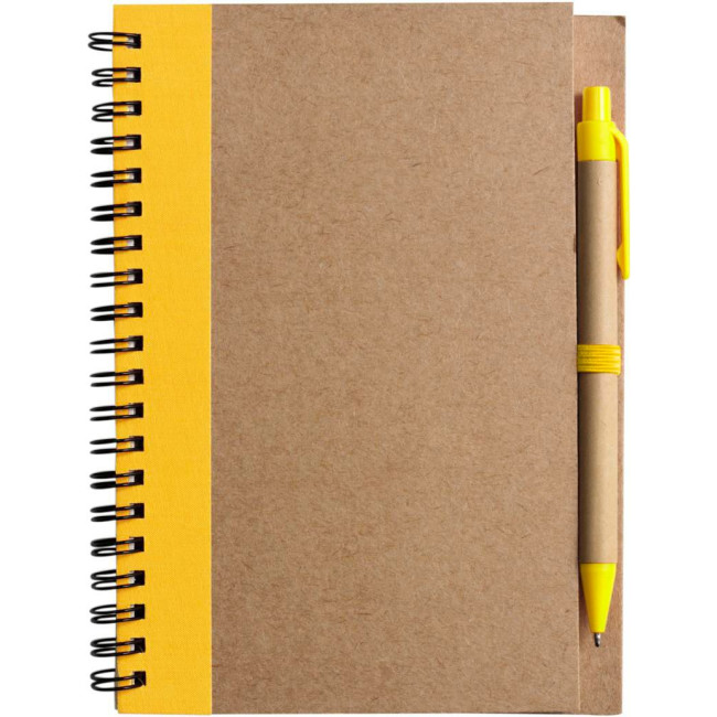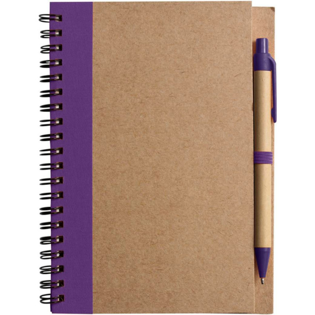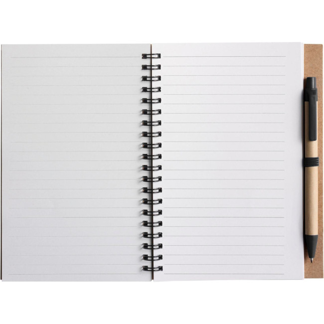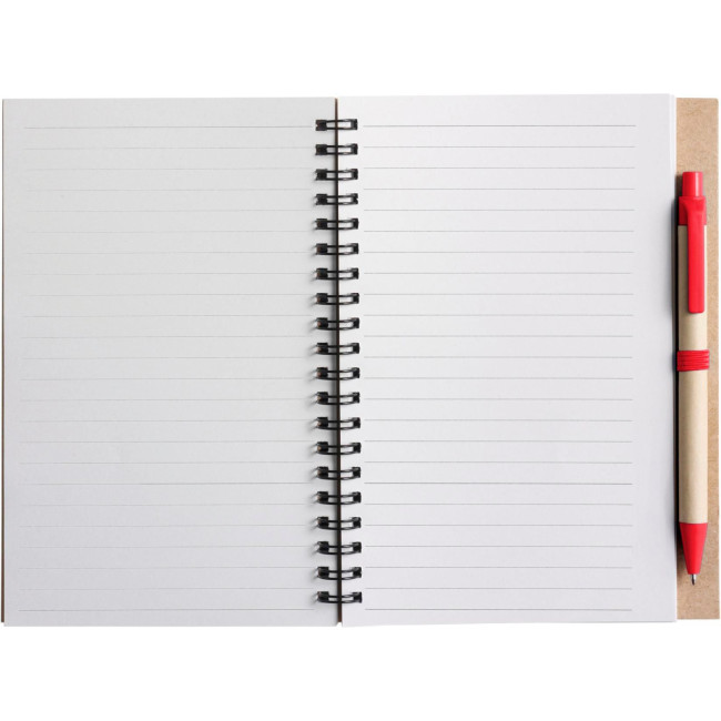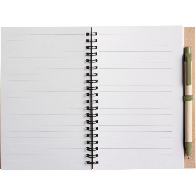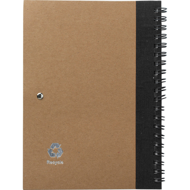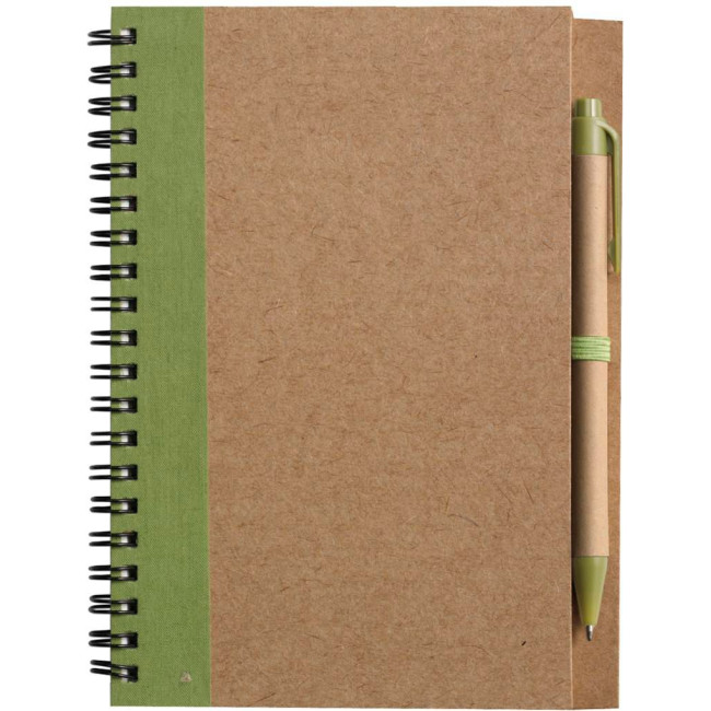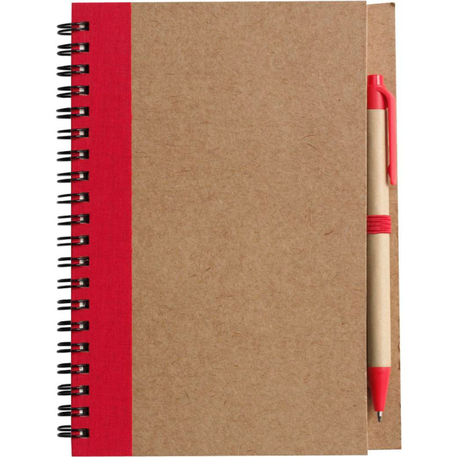 Taccuino in carta riciclata e tela, dotato di penna a sfera, con componenti biodegradabili, refill blu