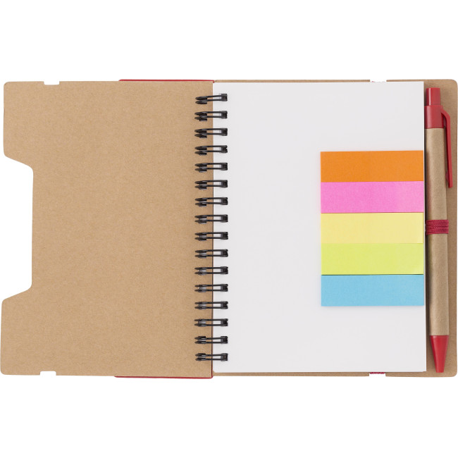 Taccuino in carta riciclata, memo stick adesivi, penna a sfera