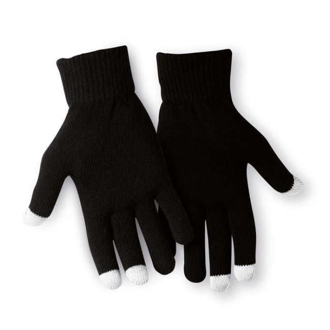 Guanti tattili per smartphone in acrilico. Le 3 estremità tattili delle dita sono composte da 0,5% in fibra di acciaio inossidabile, 89,5% in acrilico, 10% in spandex. Le dimensioni dei guanti possono variare a causa dell'elastan aggiunto.