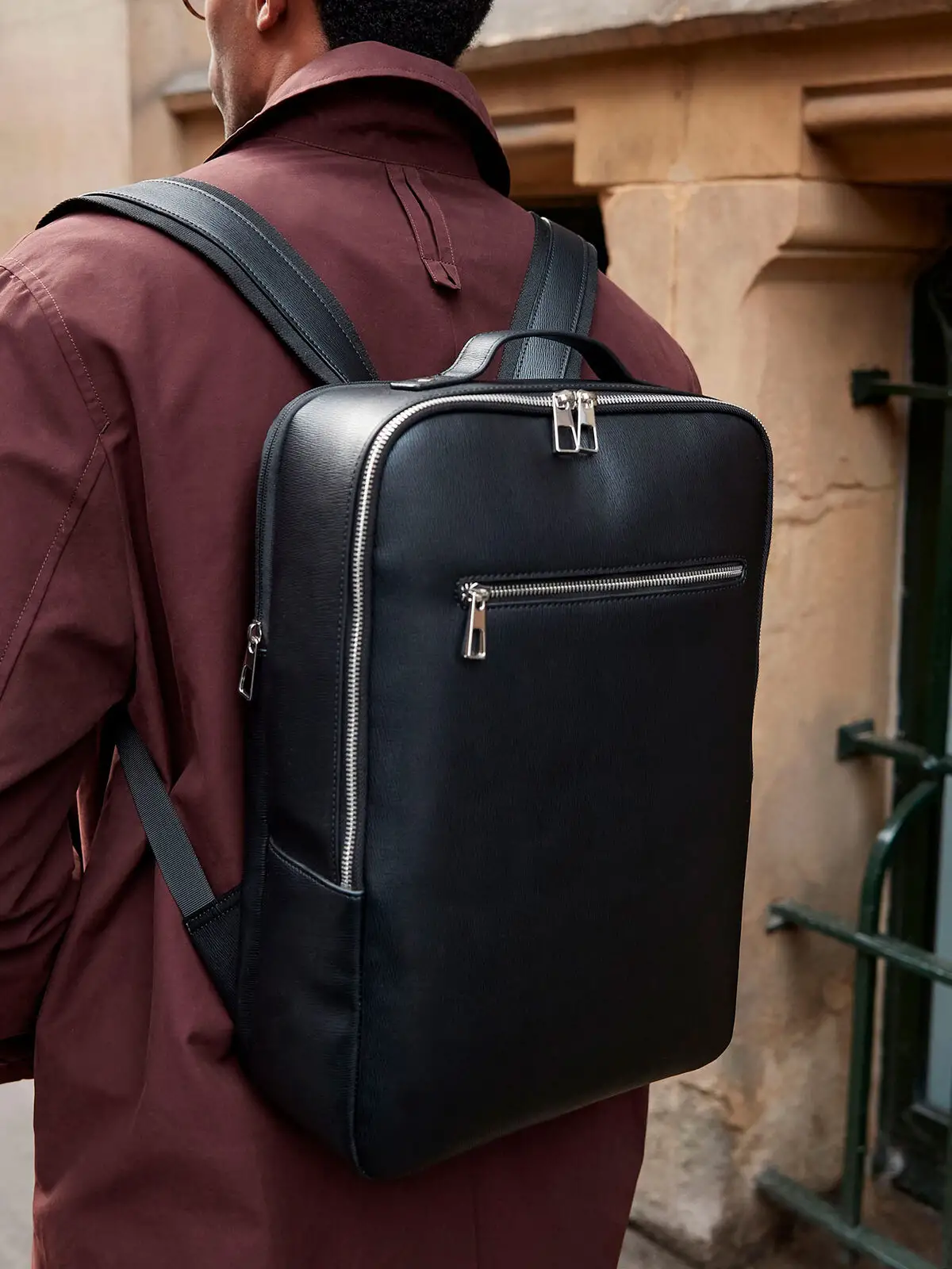 100% poliestere riciclato. Zaino per laptop fino a 16'' in poliestere riciclato certificato GRS, apertura con due zip bidirezionali, tasca frontale con zip, due tasche interne portaoggetti, porta borraccia interno, cinghia posteriore per bagaglio. Dimensioni: 28,5x40x12cm, Capienza: 10 litri. Etichetta strappabile.