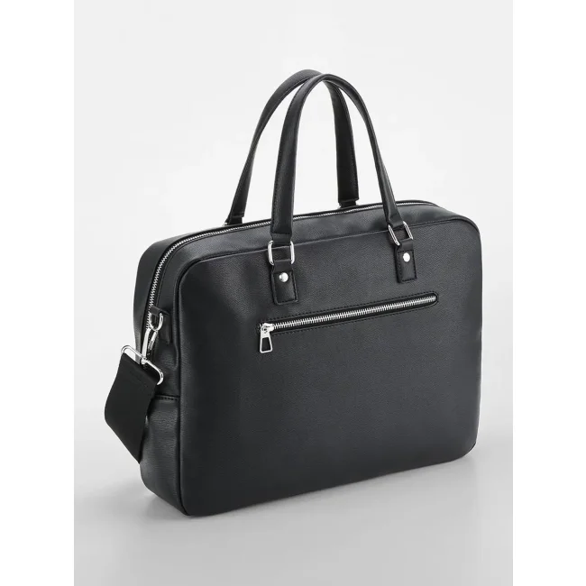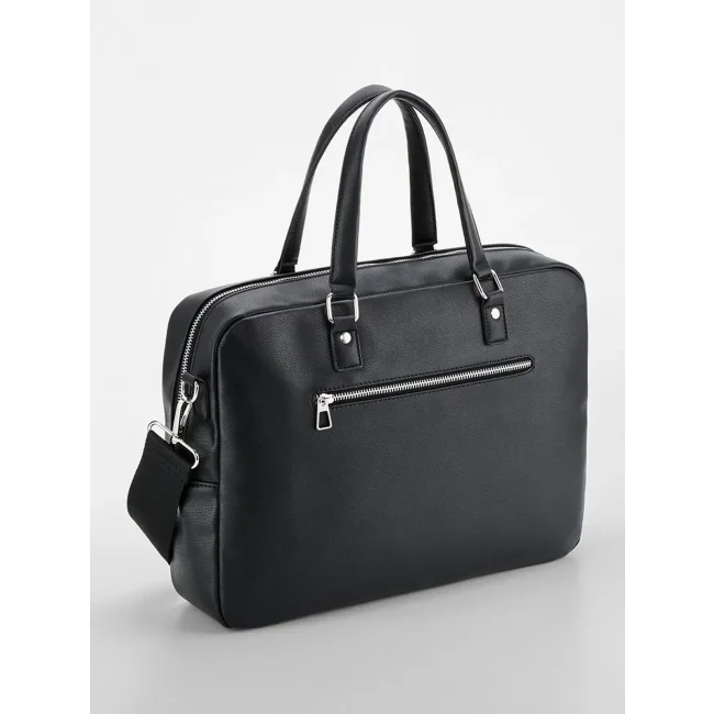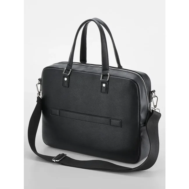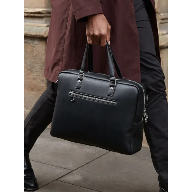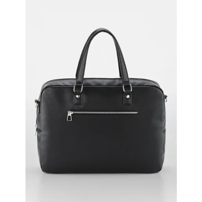 100% poliestere riciclato. Valigetta per laptop fino a 16'' in poliestere riciclato certificato GRS, apertura con due zip bidirezionali, tasca frontale con zip, porta borraccia interno, molteplici tasche interne, tracolla regolabile e rimovibile. Dimensioni: 39x28x10cm, Capacità: 11 litri. Etichetta strappabile.