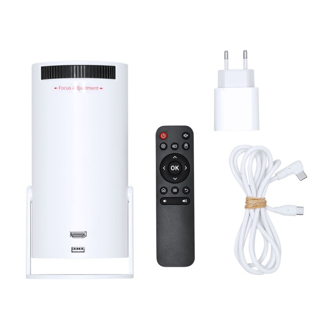 Progetta un proiettore con connettività Bluetooth e WiFi che offra un'esperienza audiovisiva fantastica. Realizzato in ABS resistente con finitura opaca e dettagli in silicone antiscivolo, incorpora un regolatore di messa a fuoco manuale e un angolo di rotazione di 180º per una visuale ottimale. Supporta fino a 1080p, 2K e 4K tramite ingresso HDMI, garantendo immagini chiare e definite. Il suo potente altoparlante integrato da 3W offre un suono immersivo, ideale per la riproduzione di video, audio e foto. Per quanto riguarda le connessioni, ha: HDMI (femmina), USB A, USB Type C e uscita audio con jack da 3,5 mm.