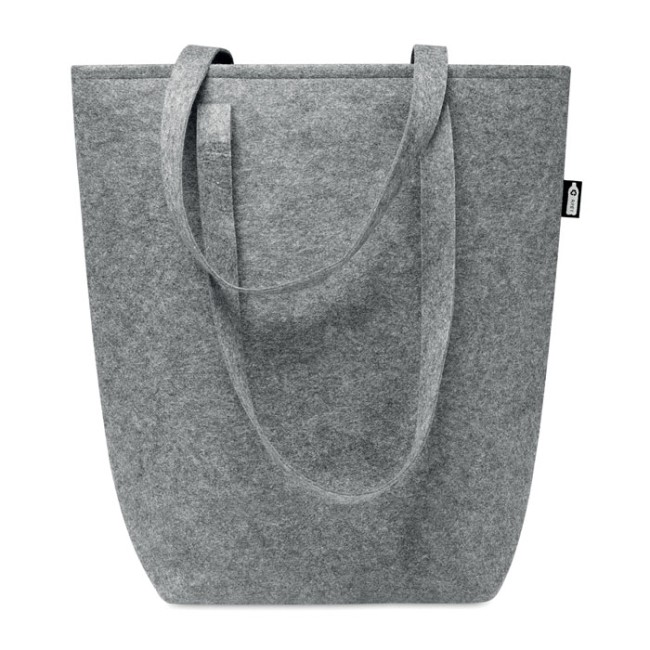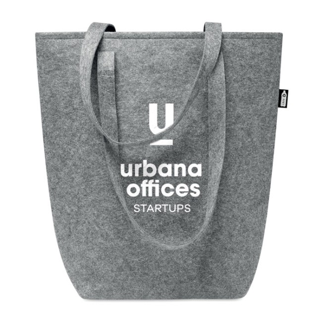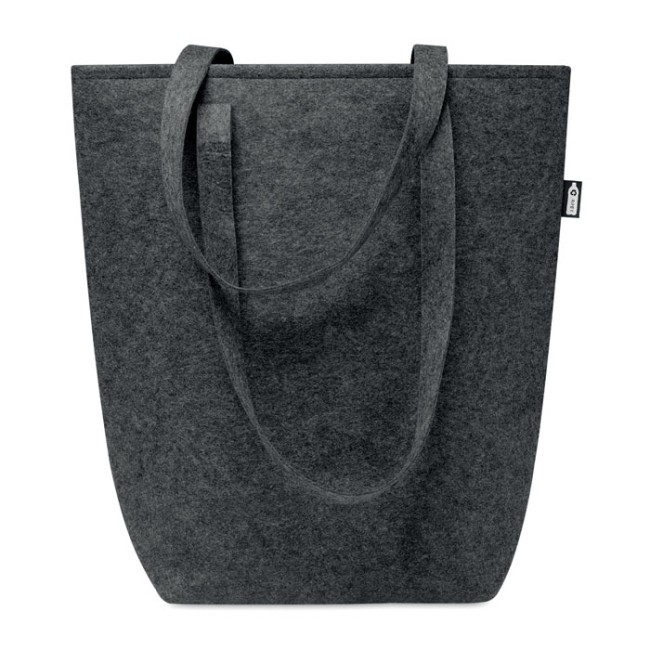 Shopper in feltro RPET con manici lunghi e soffietto alla base per una maggiore capienza rispetto alle borse di forma standard. Adatta per la spesa quotidiana, ha lunghi manici comodi da indossare a mano o sulla spalla. Spessore del feltro: 2 mm.
