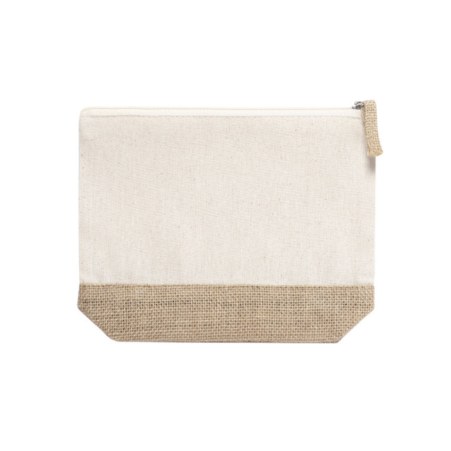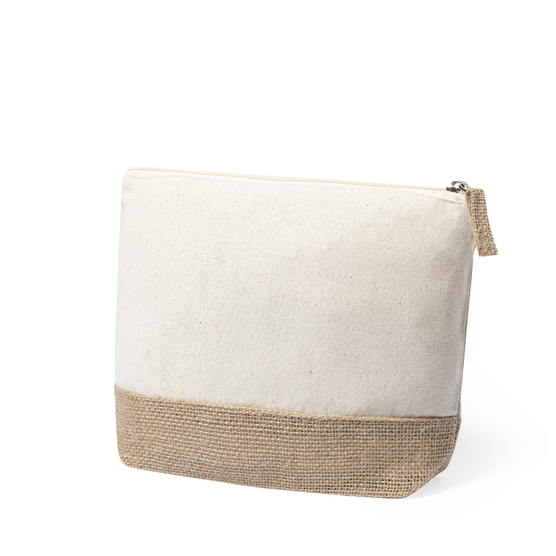 Beauty Case della linea Nature in una combinazione di iuta laminata e cotone naturale. Con chiusura a cerniera e tirazip in iuta abbinato.