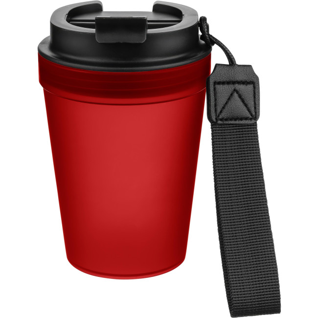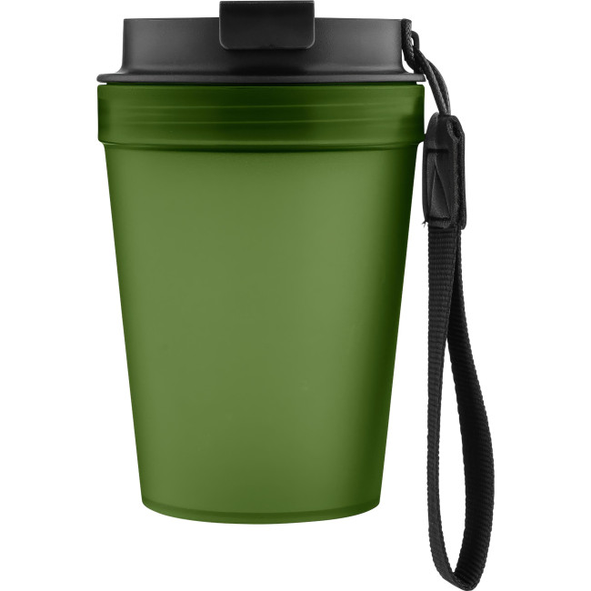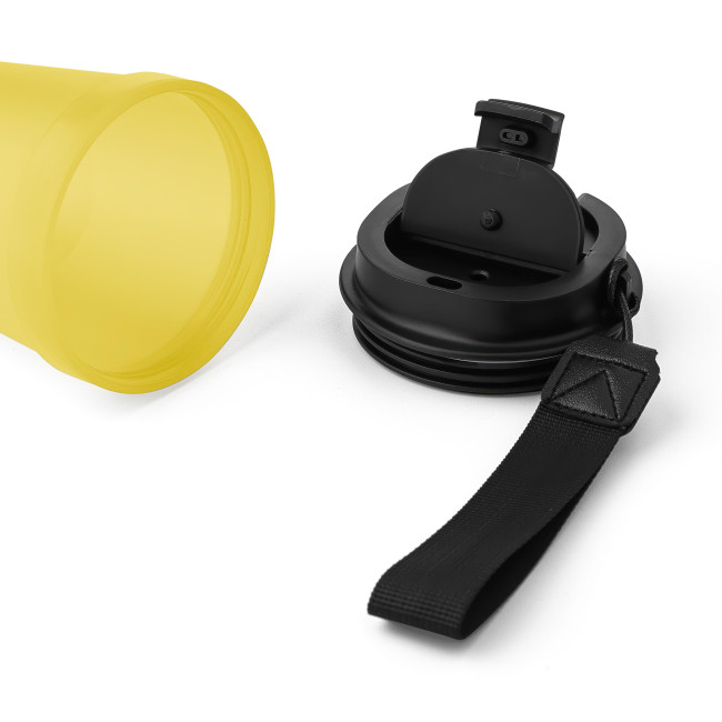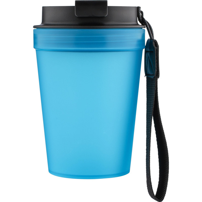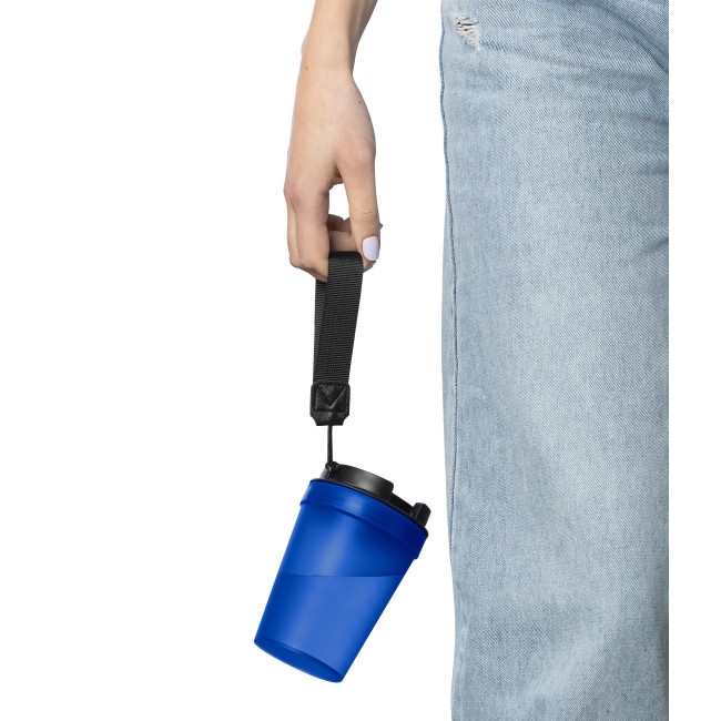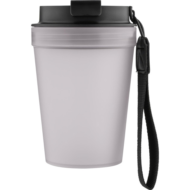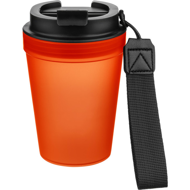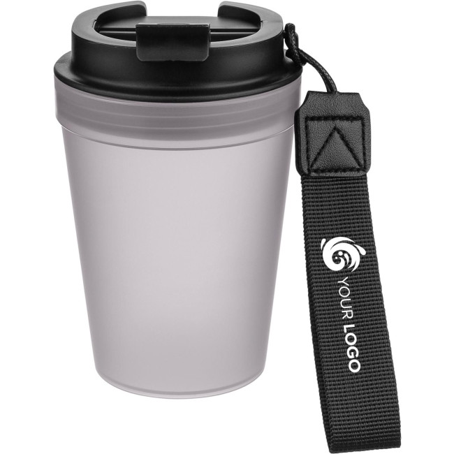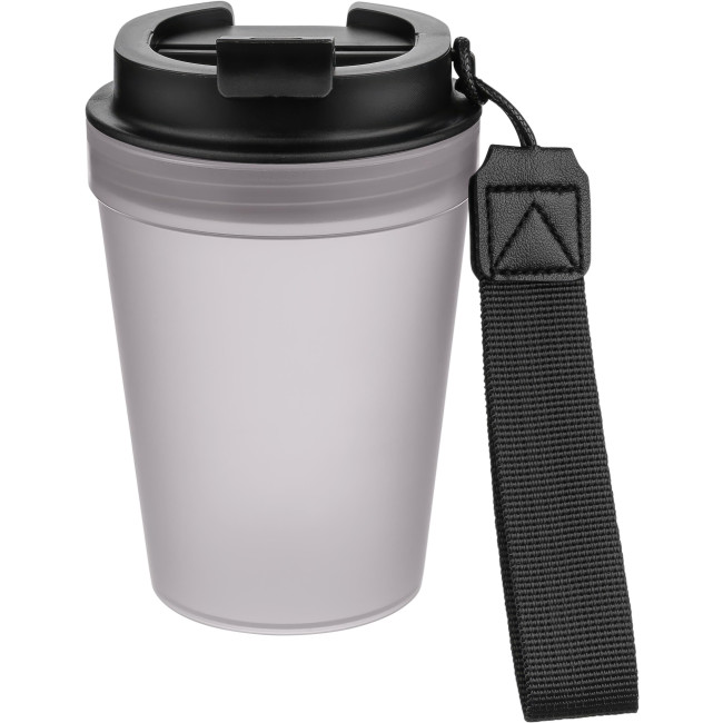 Tazza da viaggio trasparente a parete singola con capacità di 350 ml e design a pareti spesse. Dotata di coperchio a vite e cordino in poliestere per un facile trasporto. Leggera, resistente e antiurto, adatta per bevande calde, anche se può verificarsi un trasferimento di calore. Non adatta al microonde o alla lavastoviglie. Corpo stampabile.