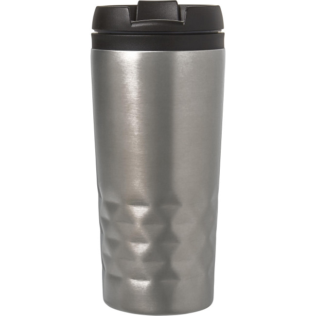 Tazza termica da viaggio, doppia parete, acciaio inox, capacità 300 ml. A temperatura ambiente, mantiene il liquido approssivamente 3 ore freddo e 2 ore caldo.