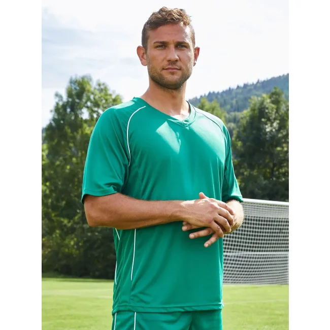 100% poliestere. Team T-Shirt Traspirante e ad asciugatura rapida. Durevole, di facile manutenzione, leggera e confortevole, Inserti a contrasto, Tessuto esterno (135 g/m²). Manica corta.