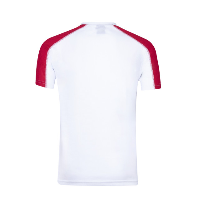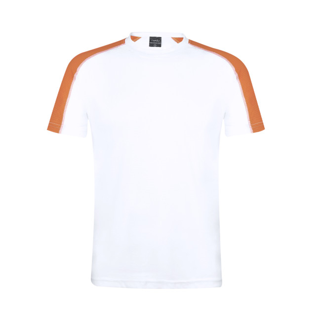 T-shirt tecnica taliga adulto in materiale dinamico, altamente traspirante e realizzata in tessuto 100% poliestere 135g/m2. Design originale in bianco, con striscia colorata sulle maniche. Disponibile in diversi colori e nelle taglie S, M, L, XL, XXL.