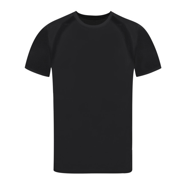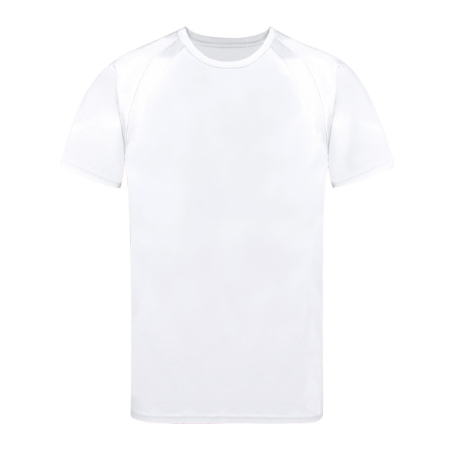 T-shirt tecnica taglia adulto in materiale 100% poliestere traspirante da 135 g/m2. Con maniche raglan, girocollo e bande frontali e laterali in tessuto microforato traspirante. Disponibile nelle taglie S, M, L, XL, XXL.