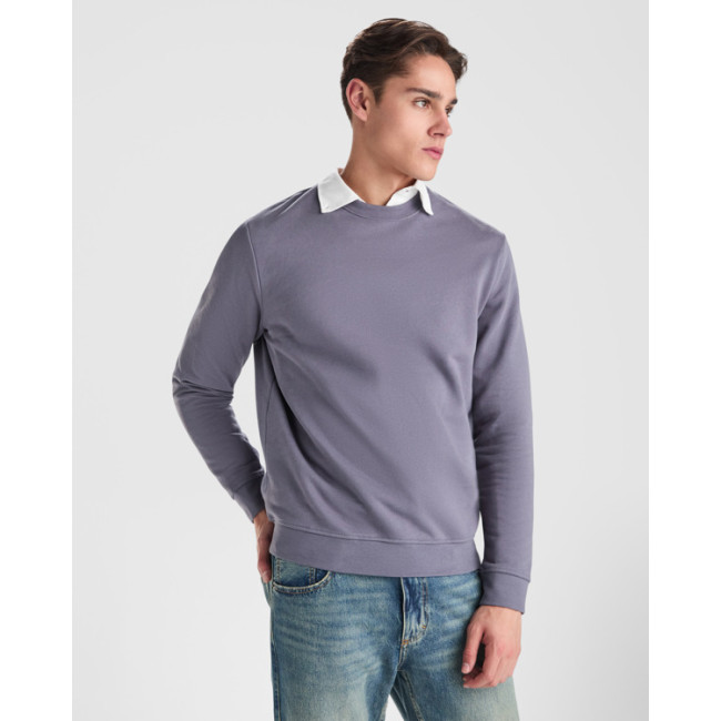 Felpa girocollo unisex. Colletto, polsini e vita a coste 2x1 con elastan. Cuciture nastrate in tessuto coordinato.