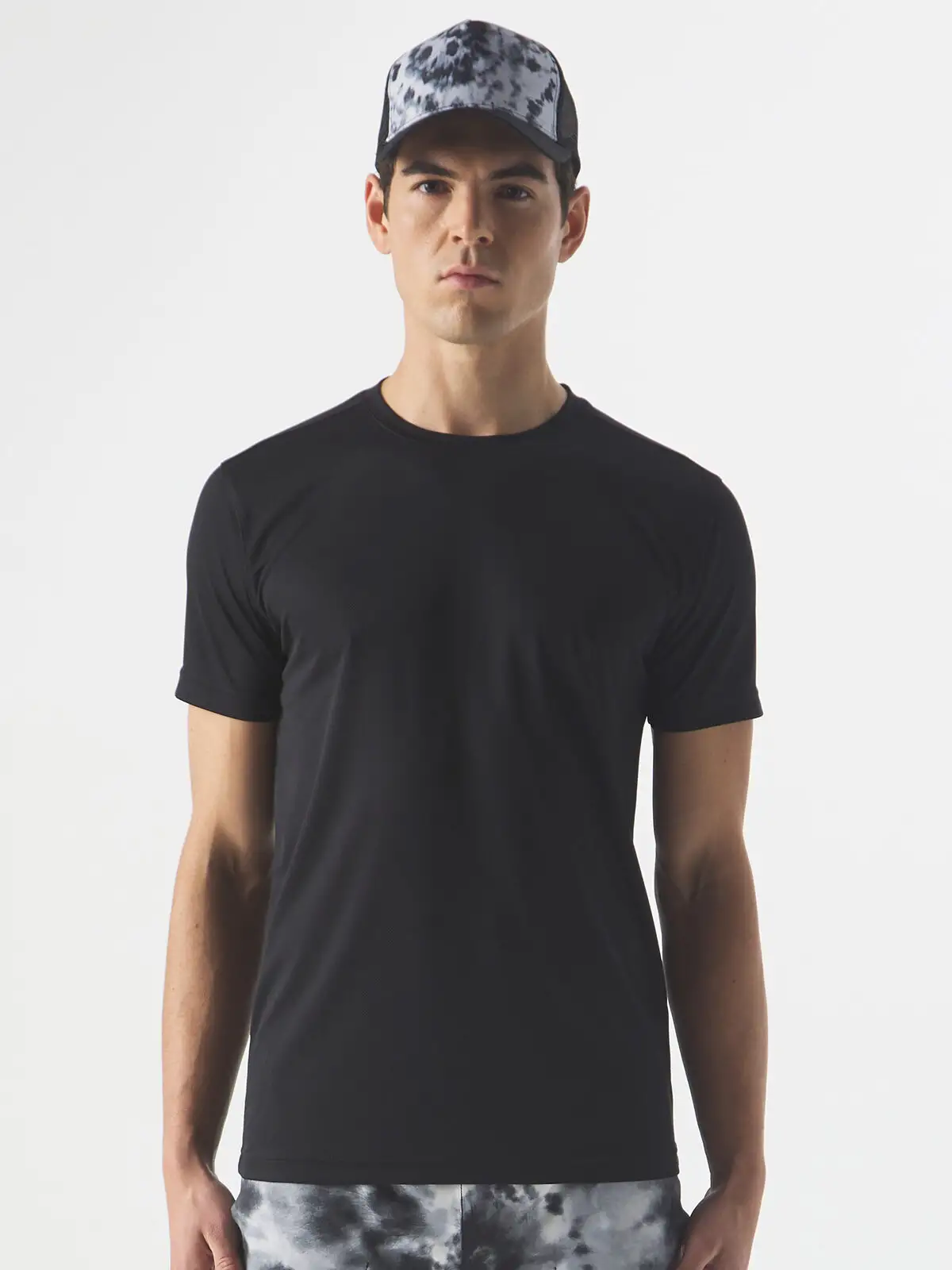 100% poliestere. T-shirt genderless maniche corte set-in, tessuto quick-dry traspirante e nastro parasudore al collo. Struttura con cuciture laterali. Etichetta removibile.