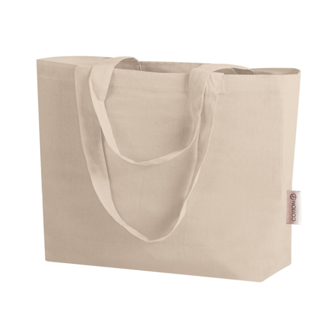 shopper in 100% cotone manici lunghi rifiniture cucite colore naturale stampa consigliata: serigrafica - transfer