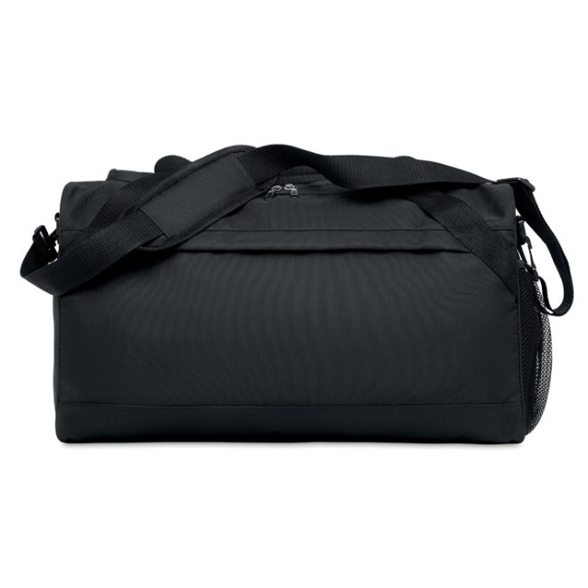 Borsa sportiva o da viaggio in 600D RPET. Questa borsa, realizzata in PET riciclato, è fantastica da portare in palestra o per un fine settimana fuori casa o una breve vacanza. Conservate i vestiti e gli oggetti da allenamento nell'ampio scomparto principale con cerniera. Gli oggetti più piccoli possono essere riposti all'interno della tasca frontale o in quella interna, entrambe dotate di chiusura con cerniera. La tracolla regolabile e staccabile rende la borsa comoda e facile da trasportare, anche quando è tutta piena.