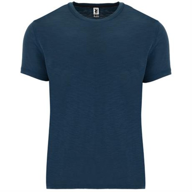 T-shirt manica corta, in tessuto vigorè inclinato.Girocollo dello stesso tessuto e cuciture decorative.Copri cuciture interne a contrasto da spalla a spalla.Cuciture laterali decorative. Girovita con aperture laterali. La parte posteriore è leggermente più lunga della parte frontale.