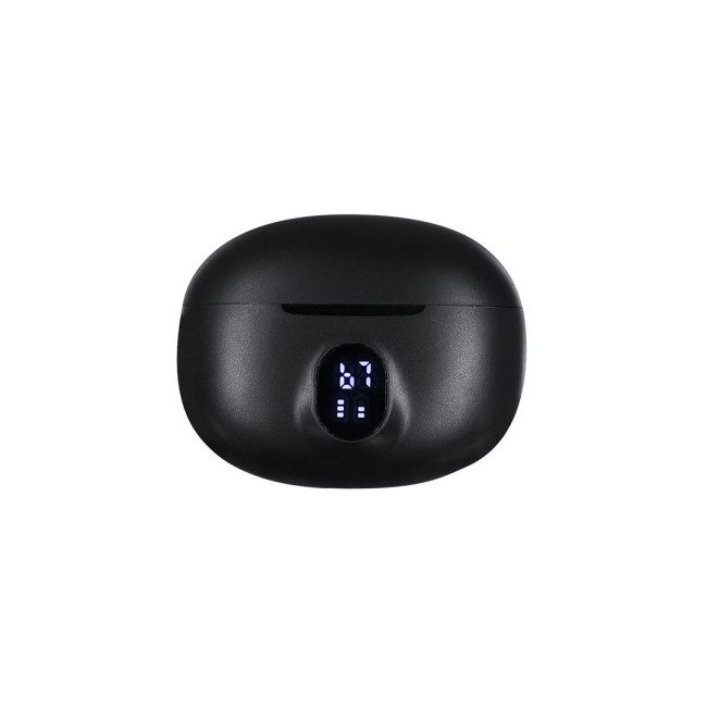 Auricolari intraaurali con connessione Bluetooth® 5.4, con funzione mani libere e cancellazione dei rumori. Di design ergonomico, includono pulsante di controllo touchscreen integrato nell'auricolare, con base di ricarica coordinata e schermo esterno dello stato della batteria per auricolare. Batteria integrata da 230 mAh. Manuale di istruzioni in spagnolo e inglese.
