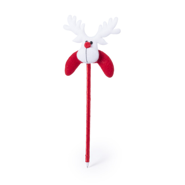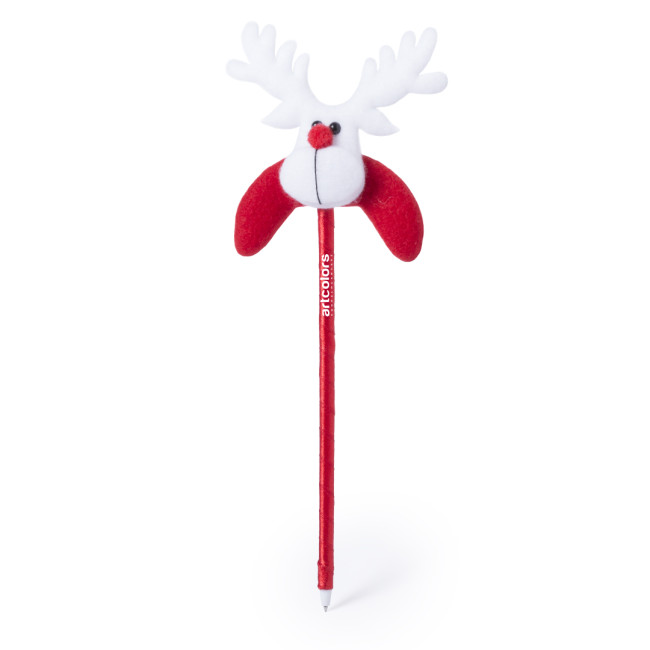 Penna dall'originale design natalizio con fusto dalla finitura metallizzata lucida. Disponibile nei disegni di Babbo Natale, renna e orsetto. Con inchiostro blu.