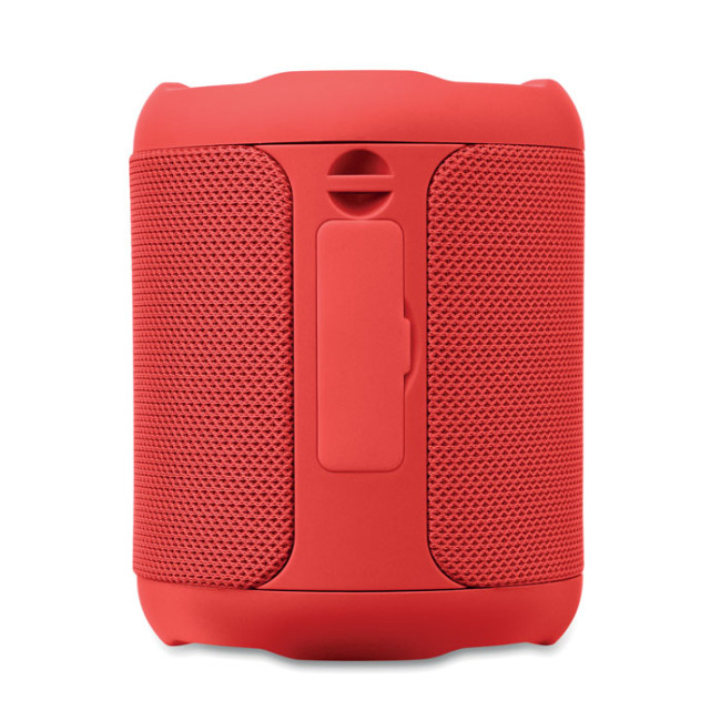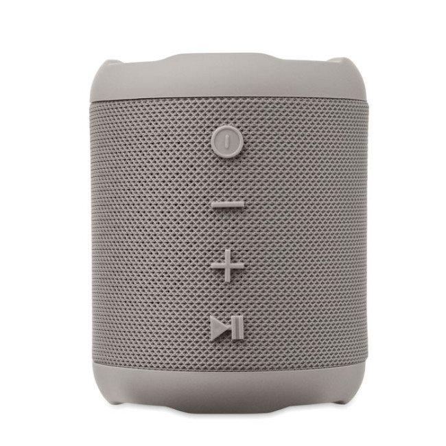 5.0 speaker wireless in ABS con tessuto RPET. 1 batteria ricaricabile Li-ION 800 mAh inclusa. Include una porta per schede SD e un cavo AUX/USB. Dati di uscita: 5W, 3 Ohm e 5V. Tempo di riproduzione di circa 3 ore.