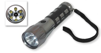 Torcia 2 in 1 in ottone brunito, 6 led e lampadina. Batterie escluse, confezione in cartoncino bianco.