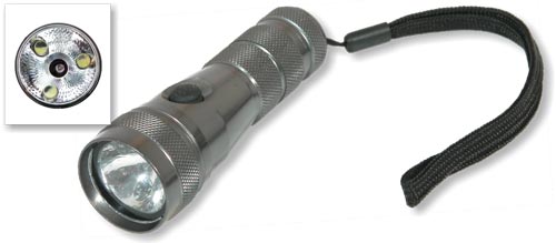 Torcia in ottone brunito, con 3 led. Batterie escluse, confezione in cartoncino bianco.